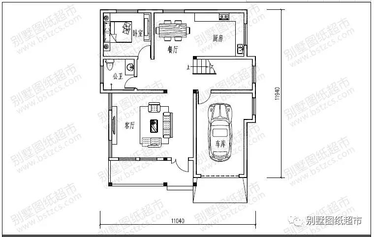 一 層:客廳、臥室、廚房、餐廳、衛生間、車庫或儲藏室