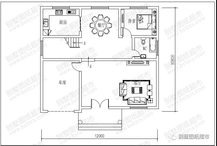一 層:客廳、臥室(附衛生間)、臥室、廚房、餐廳、衛生間、車庫
