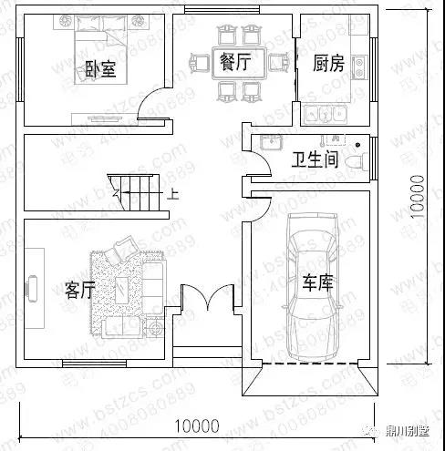 一 層: 客廳、臥室、廚房、餐廳、衛(wèi)生間、車庫