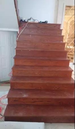 ▲地板采用本地知名品牌,美國紅橡原木仿古地板,315元一平方,總共鋪了105平方,包括踢腳線一共3.6萬。樓梯采用烤漆工藝,55個臺階3個平臺,價格3.4萬。
