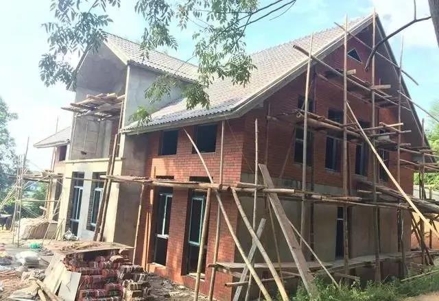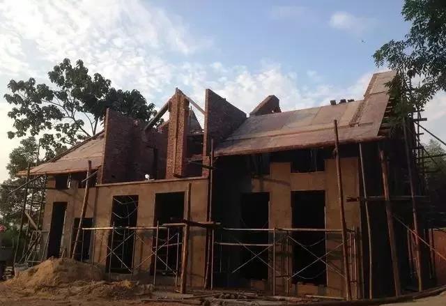 針對(duì)和頭像圖片相比比例不對(duì)的問題發(fā)現(xiàn)主要是中間的尖頂尺寸比原圖要大,原因是戶型設(shè)計(jì)完全是按自己需求設(shè)計(jì)的,沒有按原參考案例設(shè)計(jì),另外窗戶大小等也根據(jù)當(dāng)?shù)厍闆r進(jìn)行了調(diào)整。沒有蓋瓦貼外墻磚之前很多當(dāng)?shù)剜l(xiāng)親說這什么破房子,怪里怪氣的,現(xiàn)在建得差不多了,能接受的人也慢慢多了