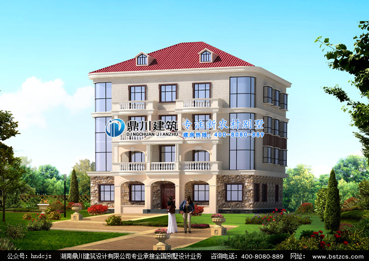 M0102四層雙拼房屋設計圖紙效果圖,雙拼別墅外觀效果圖設計