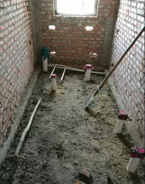 準備做地坪,做之前先在一樓的衛生間挖去了點土,讓其下沉一點,以便于下水。