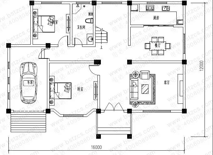 一 層:堂屋、客廳、臥室(附衛(wèi)生間)、廚房、餐廳、衛(wèi)生間、車庫