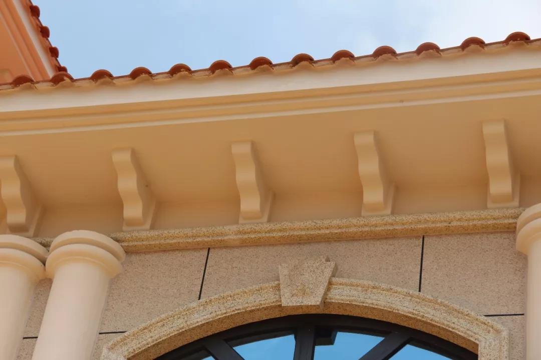 沿線、山花、梁托在外墻裝飾中起到很好的畫龍點睛作用。將房子的質感和立體感瞬間提升了不少。