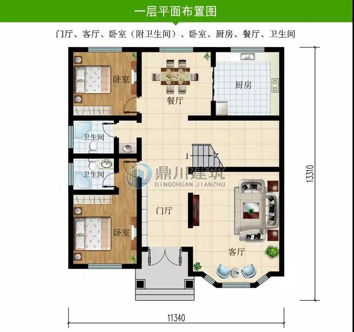 此戶型是最受農村朋友喜歡的戶型,從外觀來看簡約時尚,簡單易建造。