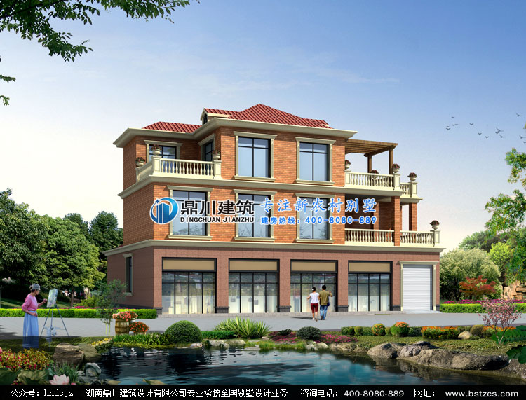 E0232帶門面的三層自建房屋設計圖效果圖,鼎川建筑門面房設計