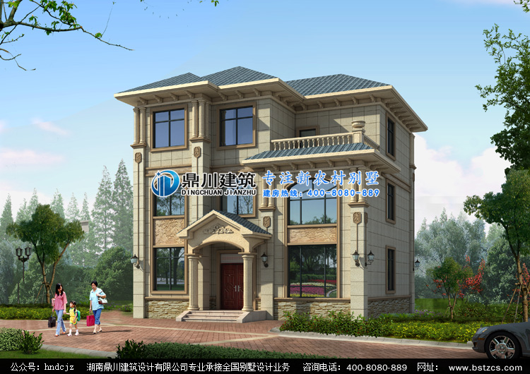 ZA008三層歐式別墅外觀效果圖,鼎川建筑三層別墅私人定制設計