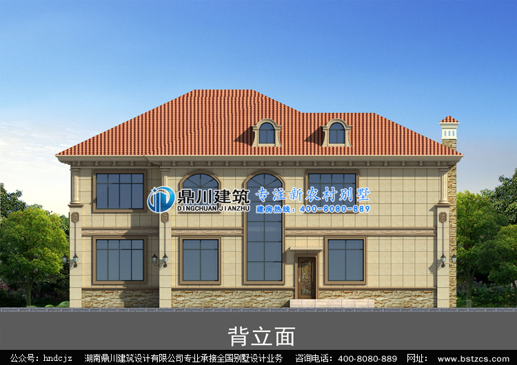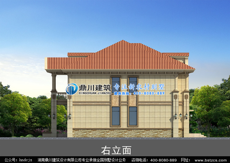 J0205二層帶露臺歐式別墅設計圖效果圖,鼎川建筑二層別墅全方位效果圖