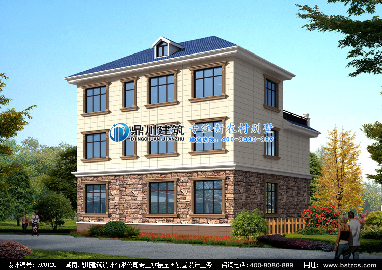 XC0120三層帶露臺農村自建別墅圖紙外觀效果圖,鼎川建筑三層別墅私人定制設計
