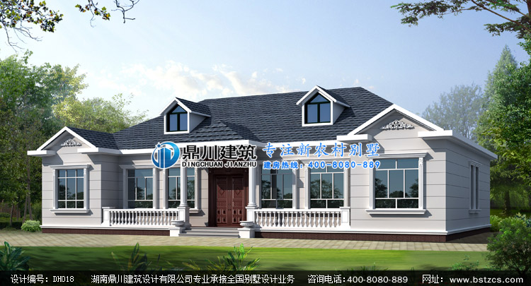 DH018農村一層雙拼自建別墅圖紙外觀效果圖,新農村一層雙拼別墅私人定制設計圖