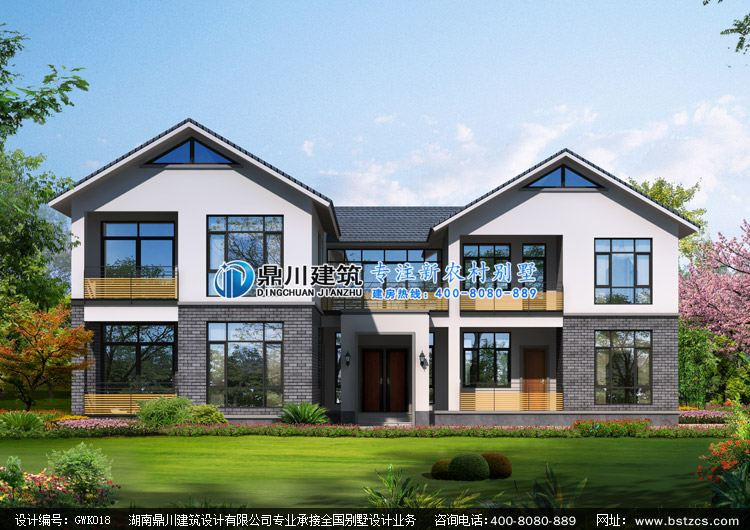 首頁 > 設(shè)計(jì)案例 > GWK018二層簡(jiǎn)約中式自建房屋設(shè)計(jì)圖紙外觀效果圖,新中式二層別墅私人定制設(shè)計(jì)