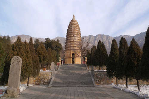 嵩岳寺塔,在登封縣城西北6公里太室山南麓嵩岳寺內。嵩岳寺原名閑居寺,早先是北魏皇室的一座離宮,后改建為佛寺。此寺的建造年代在北魏永平元年至正光元年(508~520年)之間,最少也有1450多年的歷史。