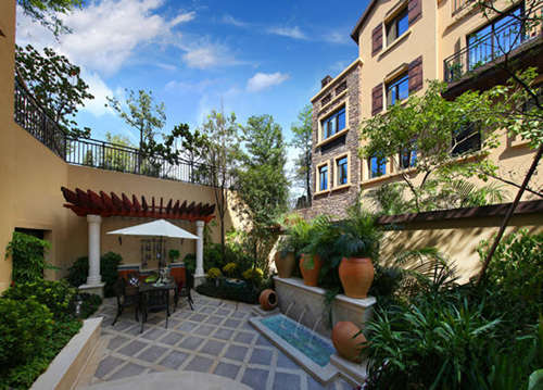 “下沉式庭院”又稱“花園層“(Garden Level)。一般是指運用在前后有高差的地方,通過人工方式處理高差和造景,使原本是地下室的部分擁有面向花園的敞開空間。下沉式庭院的經典設計就是將地下室一面墻打開,與下沉式庭院連接。這是一個真正既舒適又實用的空間,它不僅使傳統地下室的設備間、傭人房等輔助區域功能得到釋放,同時更為地下室增加了家庭娛樂、室外活動休閑等功能區。下沉式庭院的魅力是通過庭院與別墅底層綠地的坡差產生的。