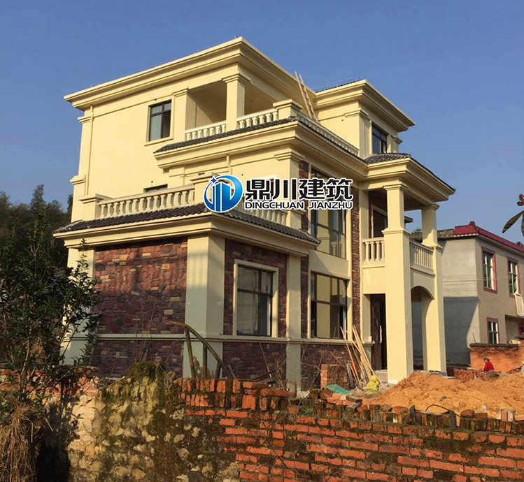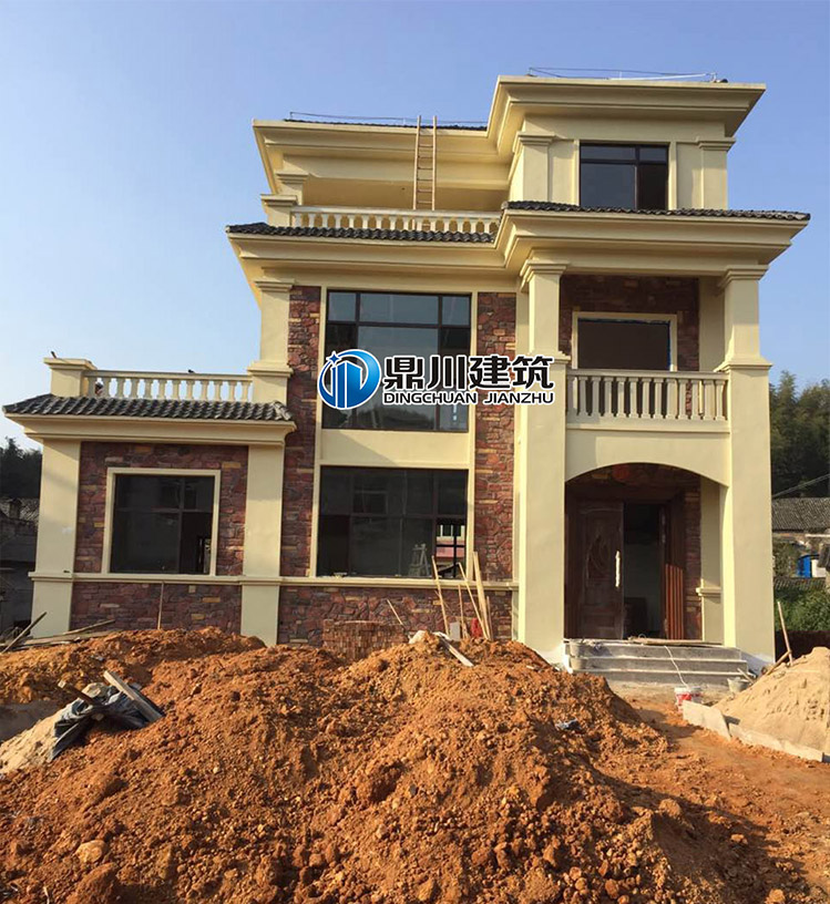 這是建好后的正面外觀。是不是看著還挺大氣?簡歐風格的建筑,農村人都喜歡在門口設計一個門廳,做一個緩步空間,下雨的時候也不至于雨水直接落在門前。