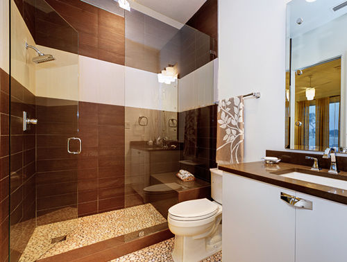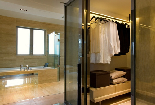 衛生間推拉門:衛生間裝上推拉門好處多,第一門框是金屬材質不怕水,第二門推開的時候是貼著墻壁,不會占用衛生間空間。