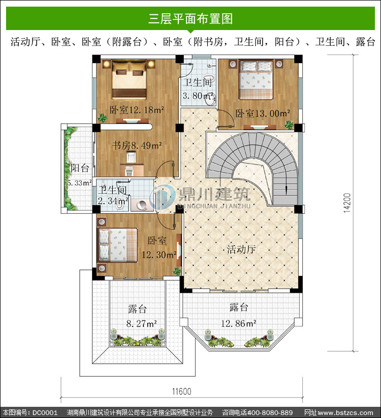 | 編號: DC0001 | 層數: 三層 | 結構形式: 框架結構 | 主體造價: 35-45萬 |