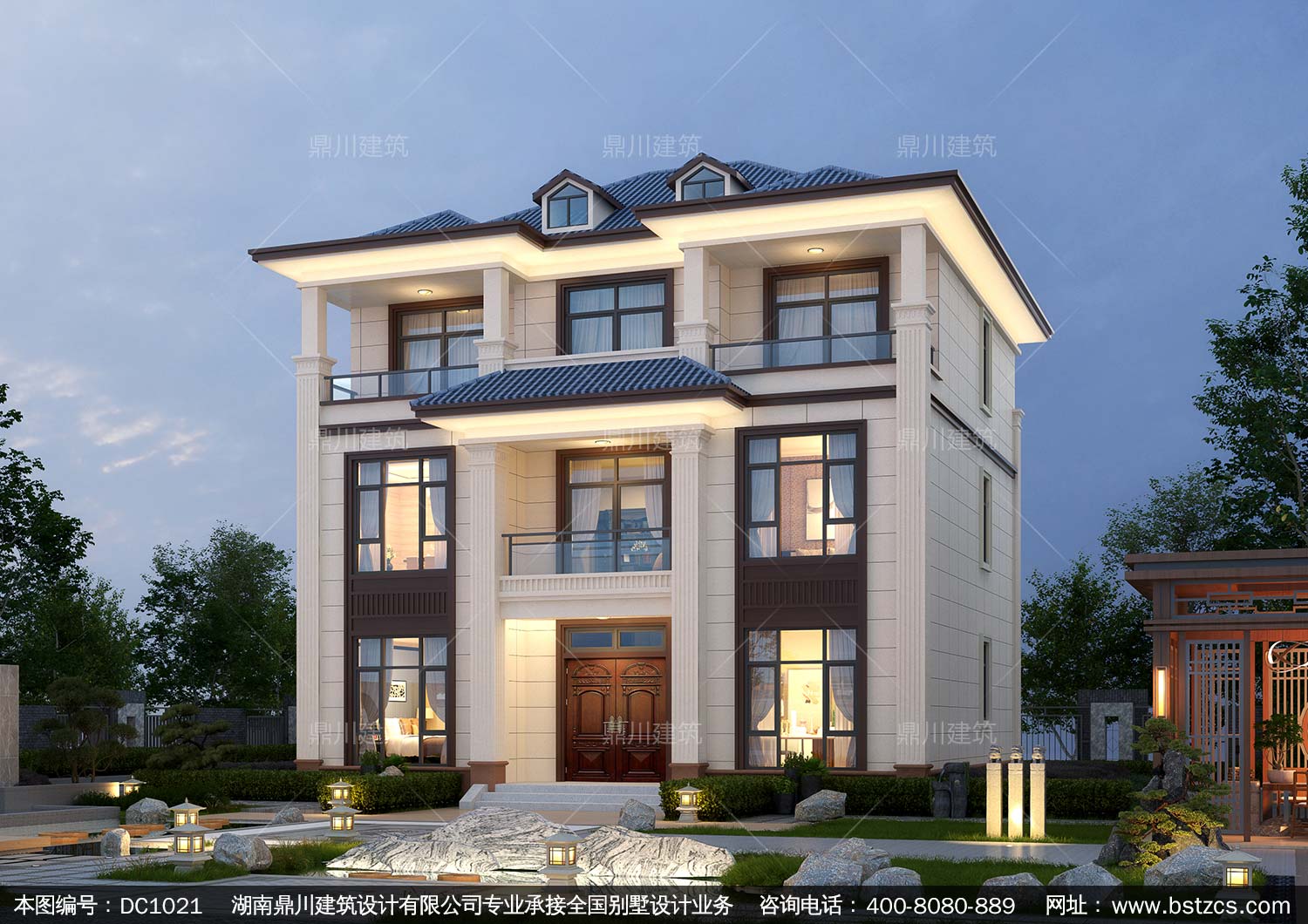 大氣三層新中式別墅設計圖紙及效果圖_農村自建別墅設計,鼎川建