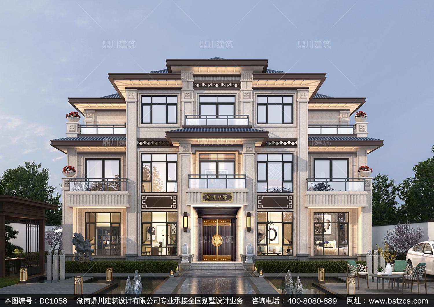 大氣新中式三層別墅設(shè)計(jì)圖紙及效果圖_農(nóng)村自建別墅設(shè)計(jì),鼎川建筑
