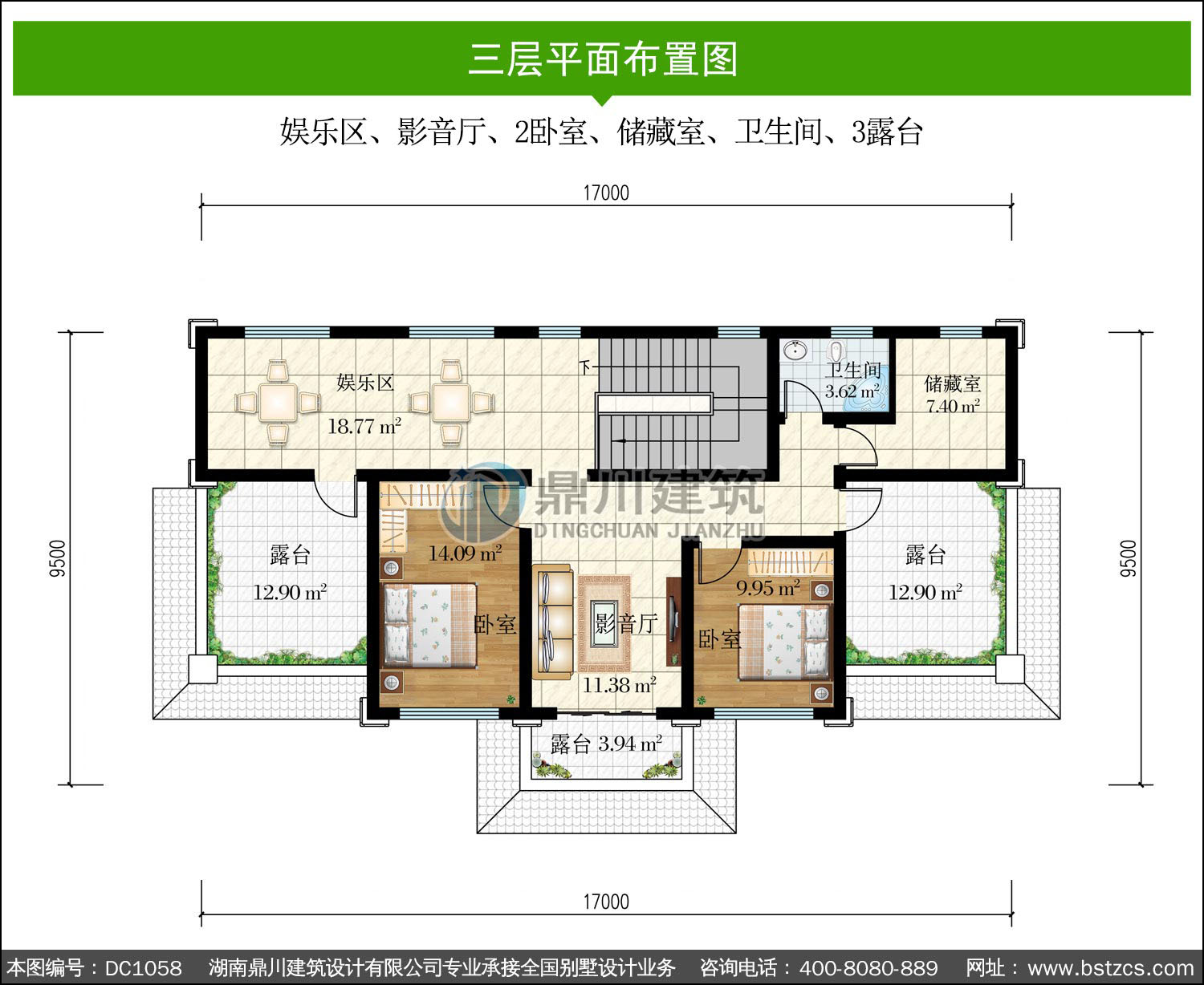 | 三 層: | 娛樂區(qū)、影音廳、2臥室、儲(chǔ)藏室、衛(wèi)生間、3露臺(tái) | |||