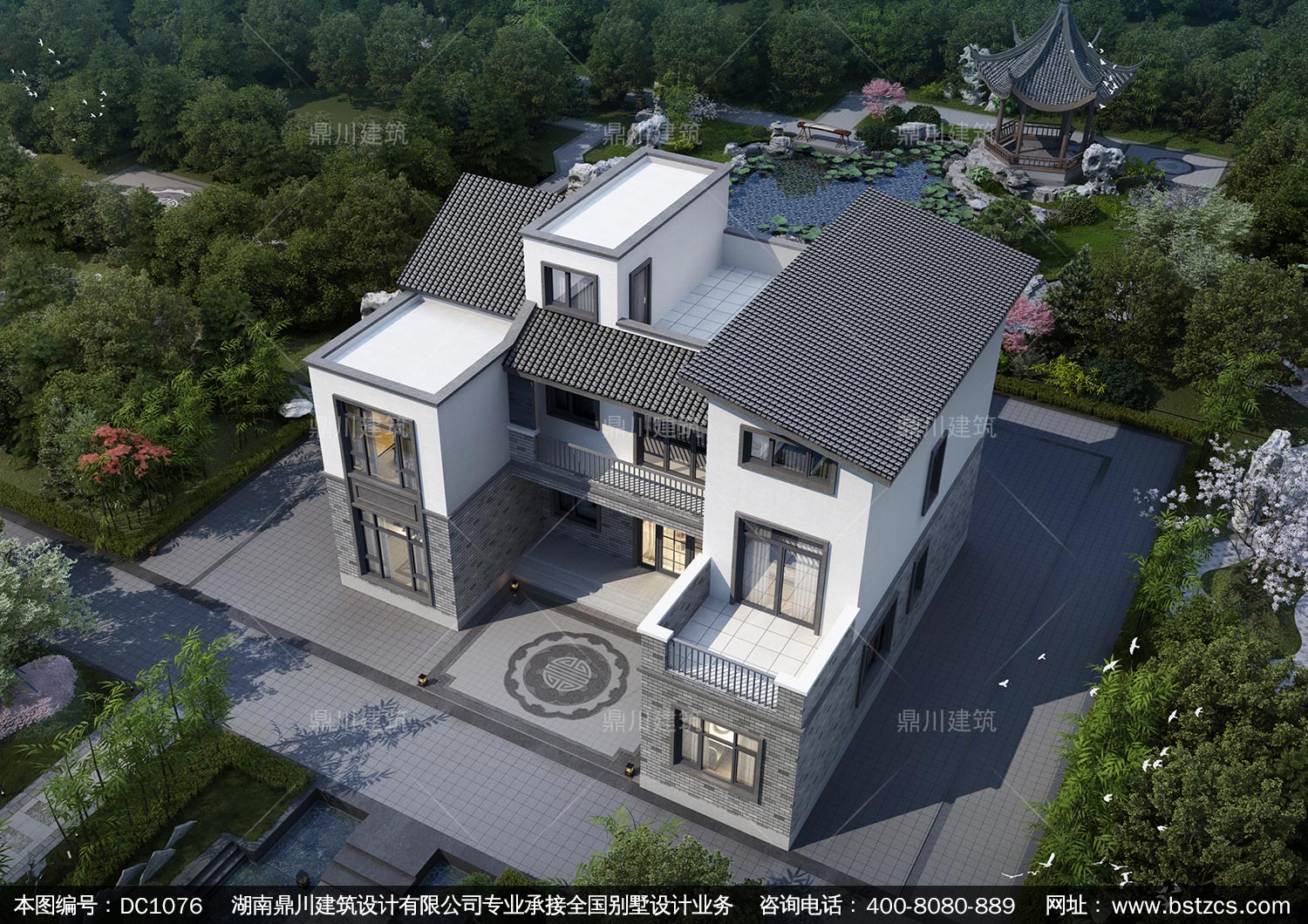 中式二層帶露臺別墅圖紙及外觀效果圖_農(nóng)村自建別墅設(shè)計,鼎川建筑
