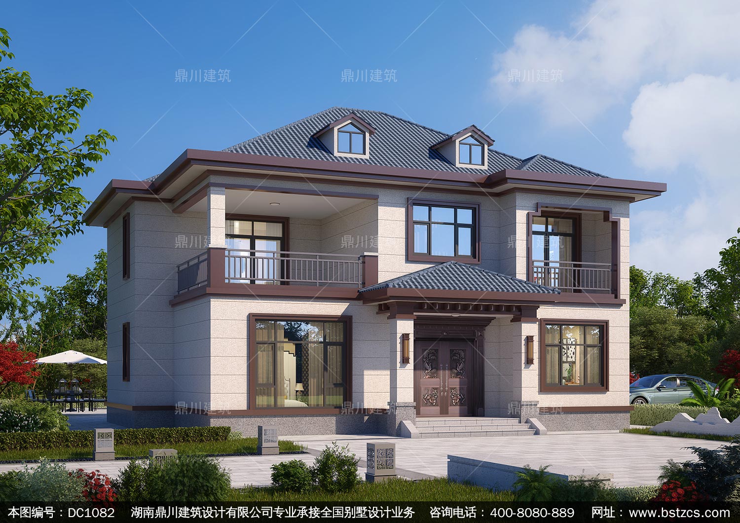新中式二層別墅圖紙及外觀效果圖_農村自建別墅設計,鼎川建筑