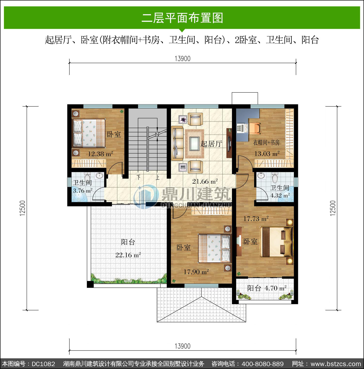 二層帶陽臺新中式別墅施工圖紙及效果圖_新農村自建房設計,鼎川