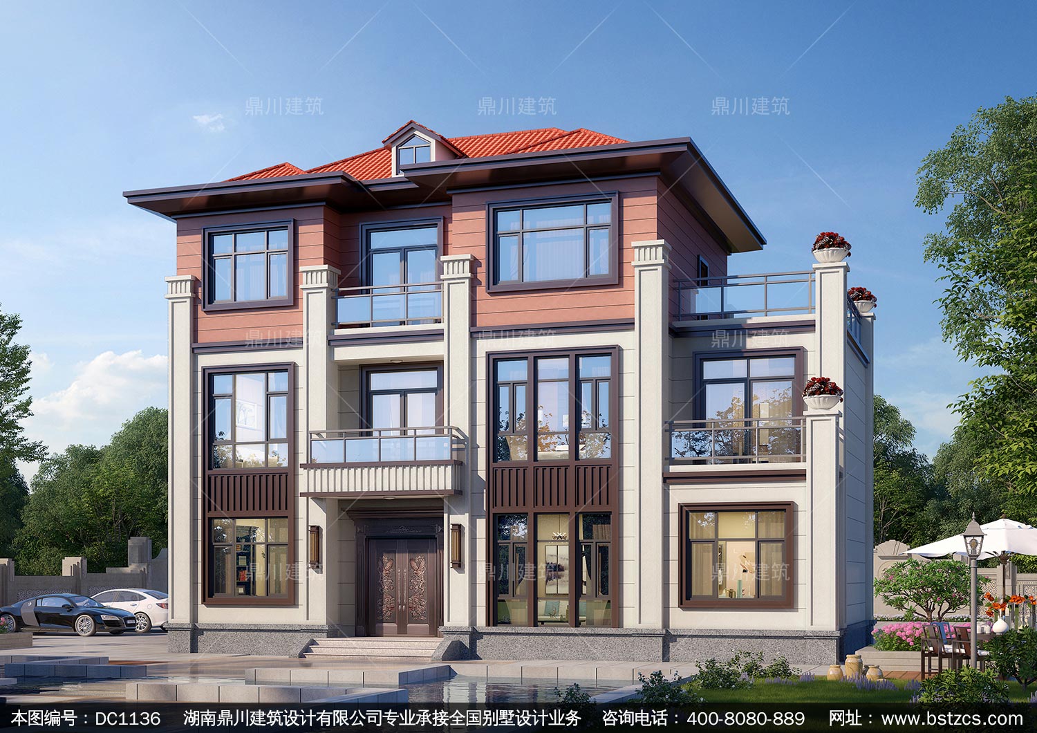 新中式三層帶露臺別墅效果圖及全套施工圖紙_農(nóng)村別墅設(shè)計,鼎川建筑