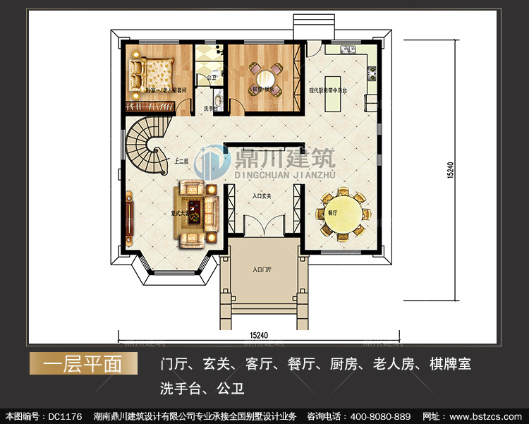 三層復式帶旋轉樓梯別墅圖紙及效果圖_農村自建別墅設計,鼎川建