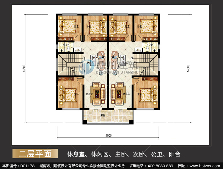 | 二 層: | 休息室、休閑區、主臥、次臥、公衛、陽臺 | |||