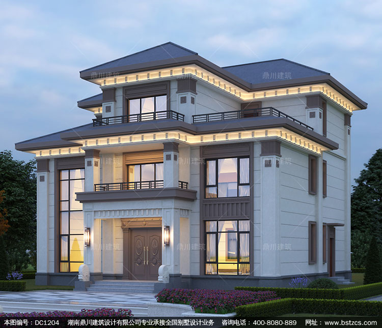 新中式三層帶露臺別墅施工圖紙及效果圖_農(nóng)村自建別墅設(shè)計,鼎川建筑