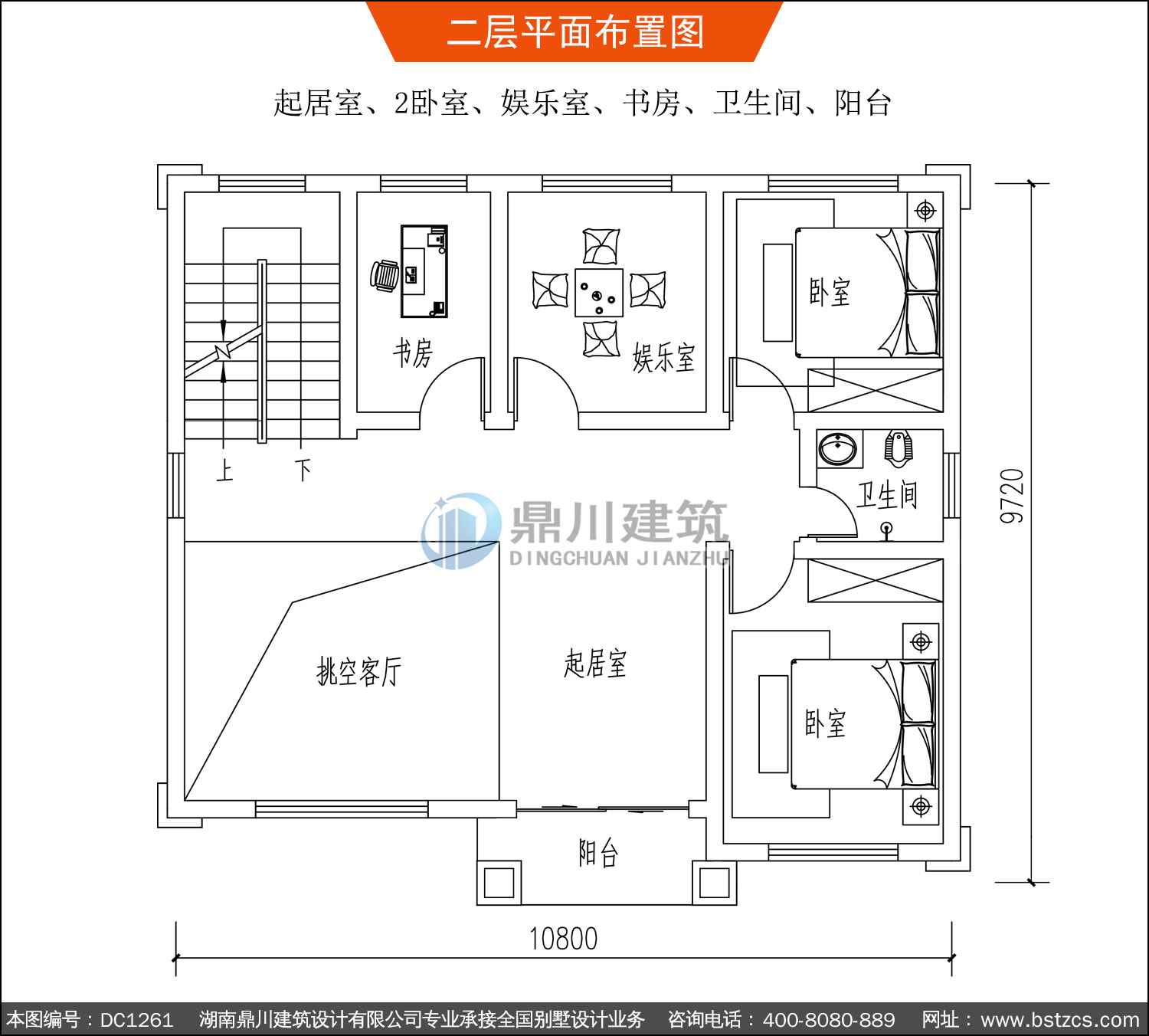 | 二 層: | 起居室、2臥室、娛樂室、書房、衛生間、陽臺 | |||