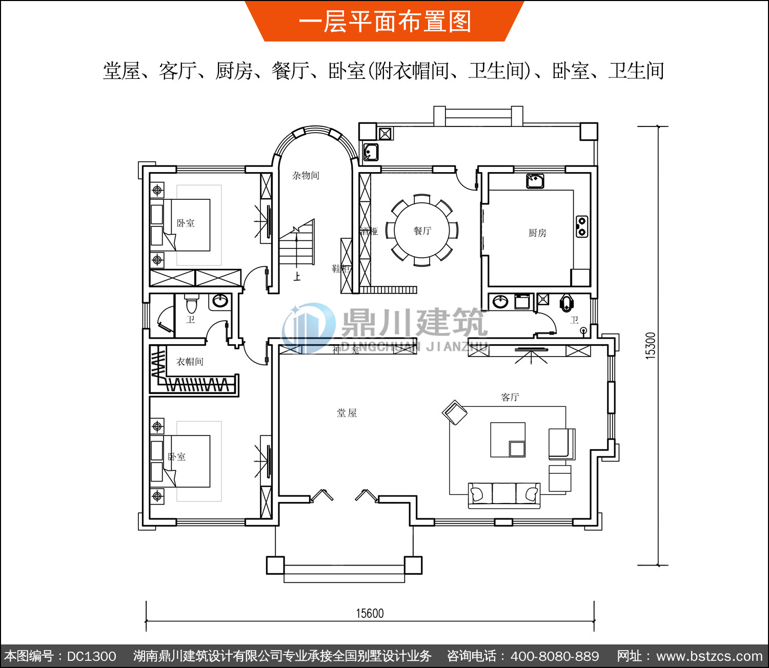 | 一 層: | 堂屋、客廳、廚房、餐廳、臥室(附衣帽間、衛生間)、臥室、衛生間 | |||