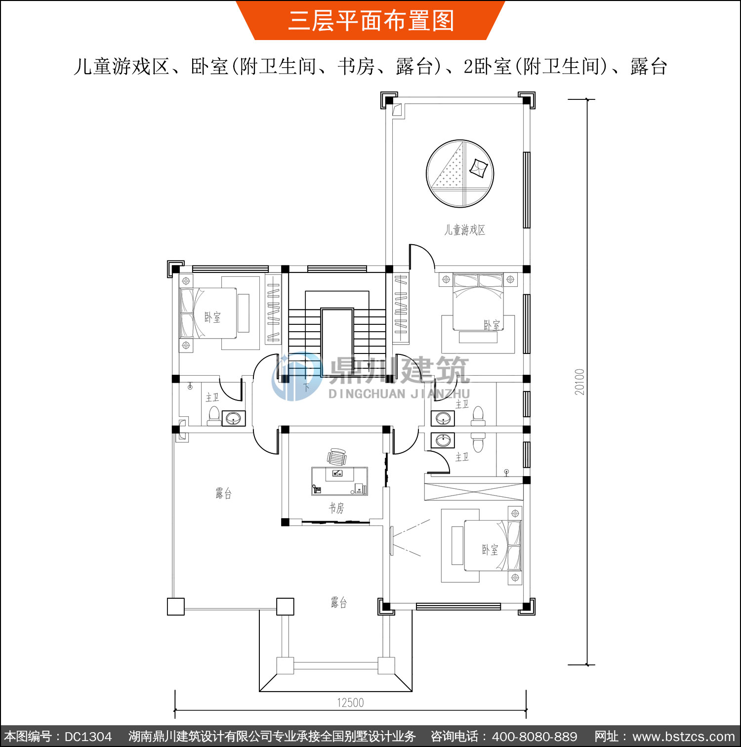 | 三 層: | 兒童游戲區、臥室(附衛生間、書房、露臺)、2臥室(附衛生間)、露臺 | |||