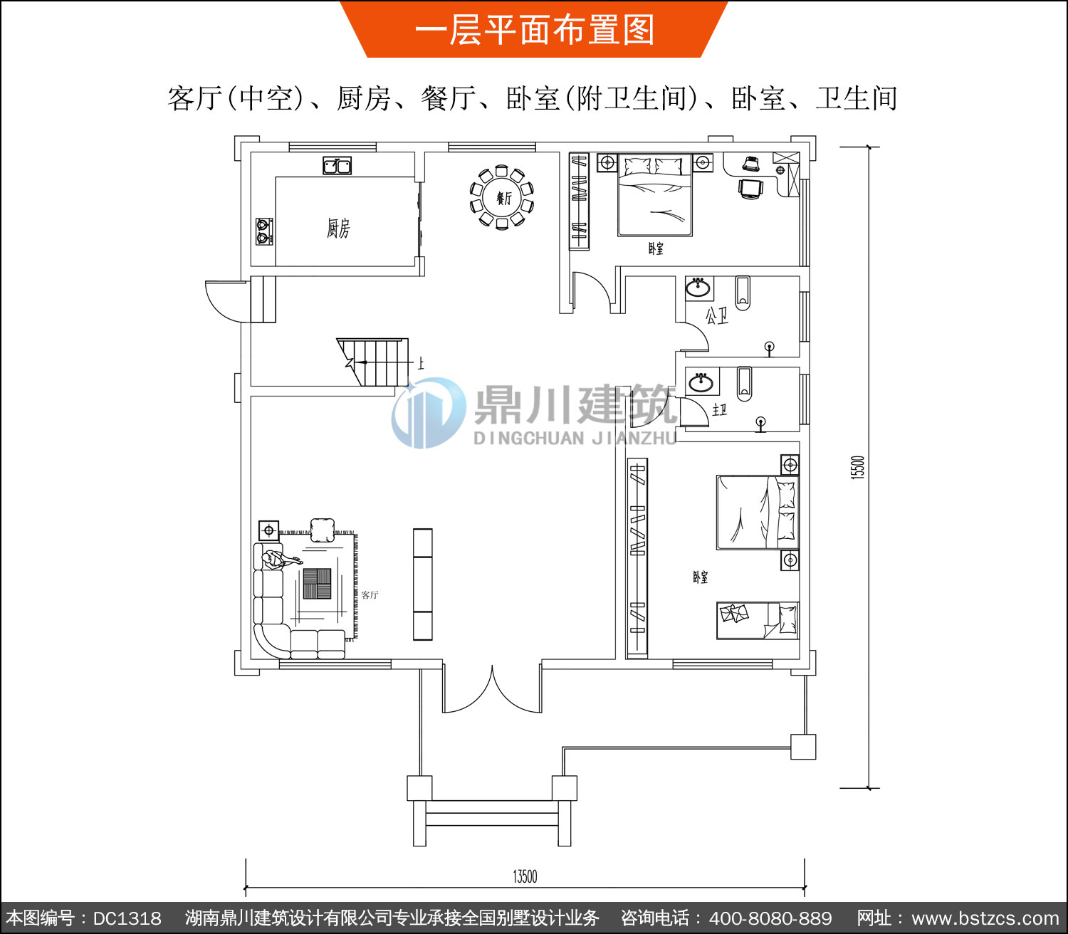 | 一 層: | 客廳(中空)、廚房、餐廳、臥室(附衛(wèi)生間)、臥室、衛(wèi)生間 | |||