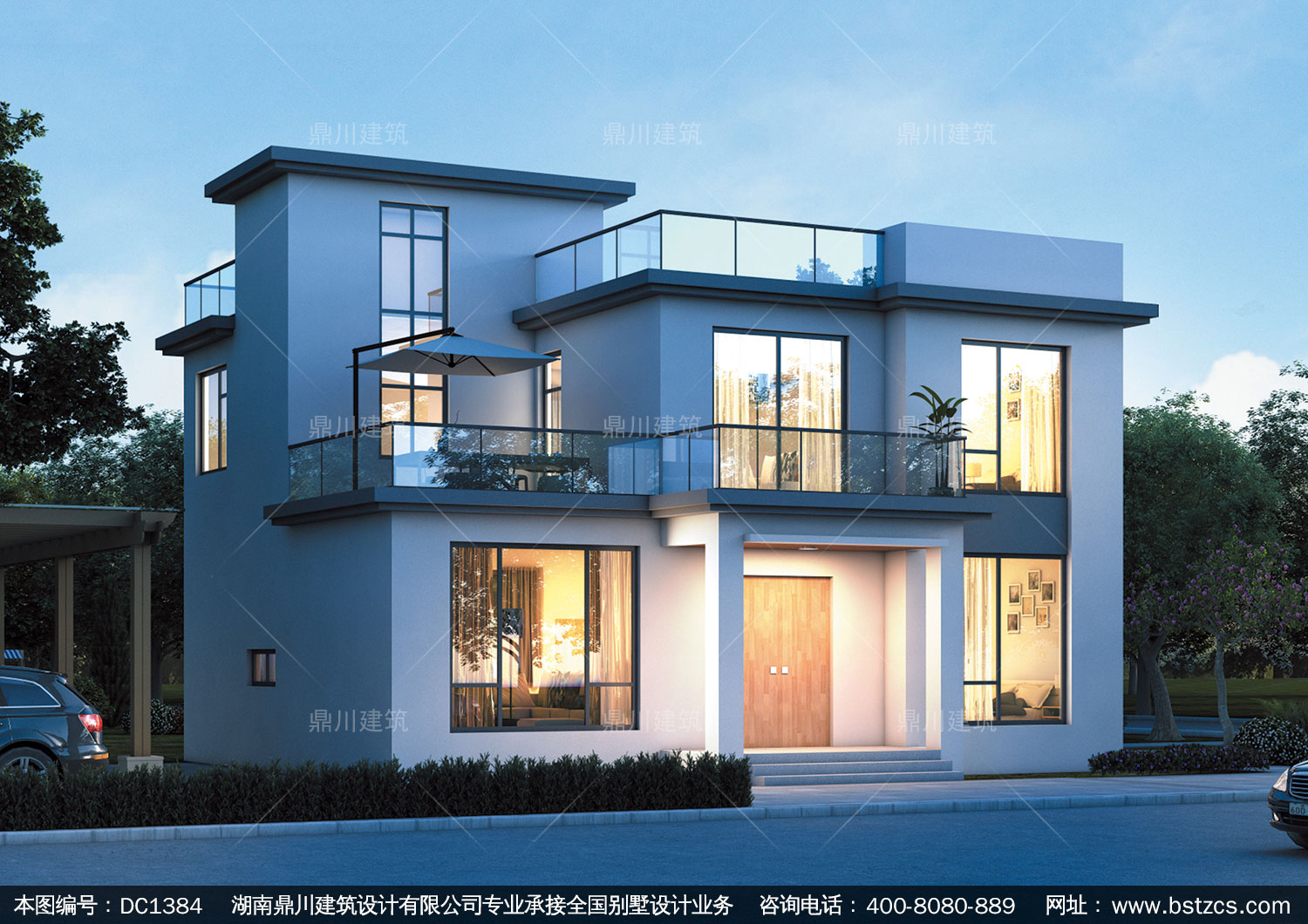 現代二層別墅效果圖及施工圖紙_農村自建別墅設計,鼎川建筑