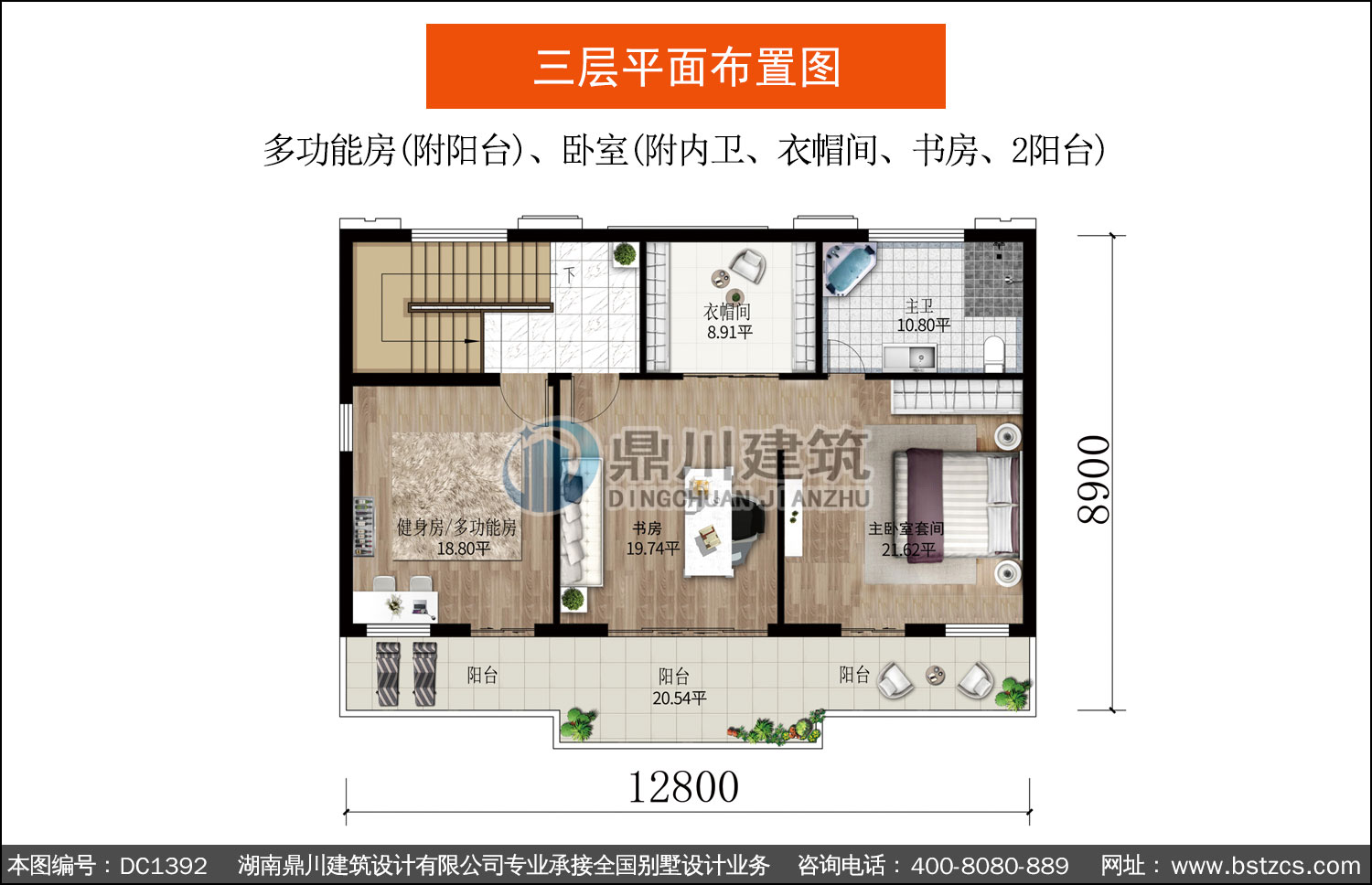 | 三 層: | 多功能房(附陽(yáng)臺(tái))、臥室(附內(nèi)衛(wèi)、衣帽間、書房、2陽(yáng)臺(tái)) | |||