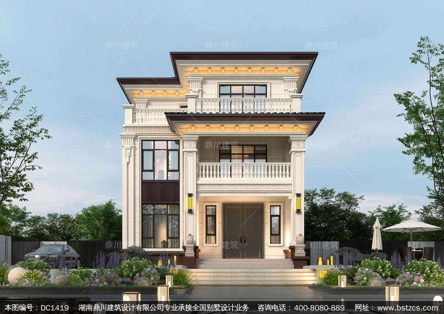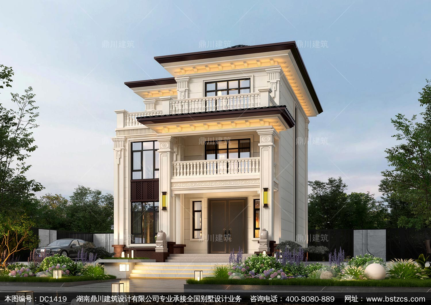 新中式三層小戶型別墅設(shè)計圖紙及效果圖_農(nóng)村自建房設(shè)計,鼎川建筑