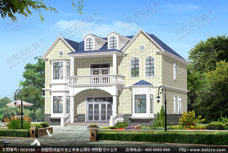 | 編號: DC0186 | 層數: 二層帶閣樓 | 結構形式: 磚混結構 | 主體造價: 25-32萬 |