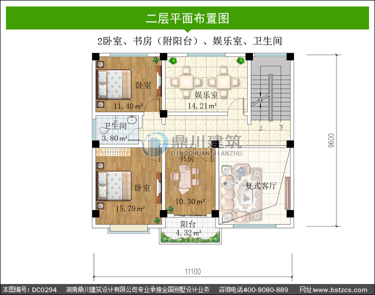 二 層: 2臥室、書房(附陽臺)、娛樂室、衛生間