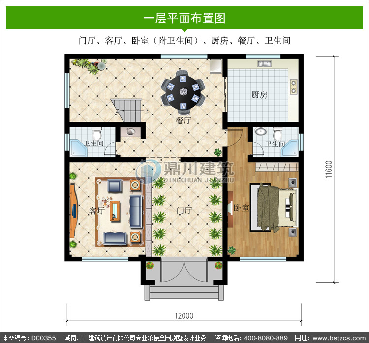 | 一 層: | 門廳、客廳、臥室(附衛生間)、廚房、餐廳、衛生間 | |||