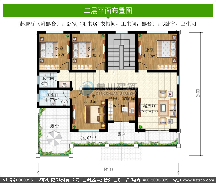 | 二 層: | 起居廳(附露臺(tái))、臥室(附書房+衣帽間,衛(wèi)生間,露臺(tái))、3臥室、衛(wèi)生間 | |||