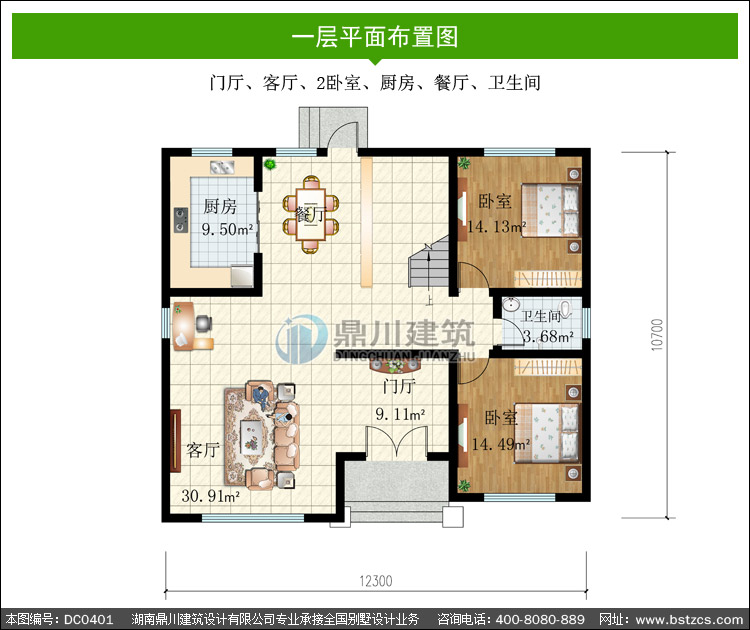 | 一 層: | 門廳、客廳、2臥室、廚房、餐廳、衛生間 | |||