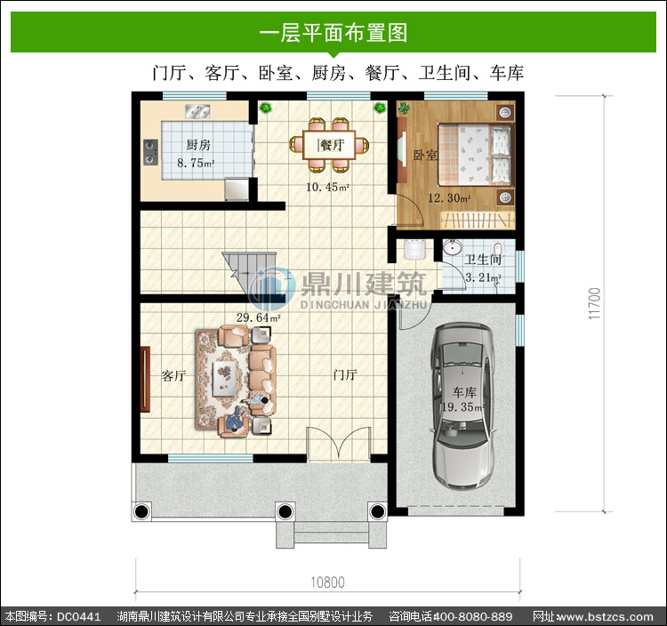 | 一 層: | 門(mén)廳、客廳、臥室、廚房、餐廳、衛(wèi)生間、車(chē)庫(kù) | |||