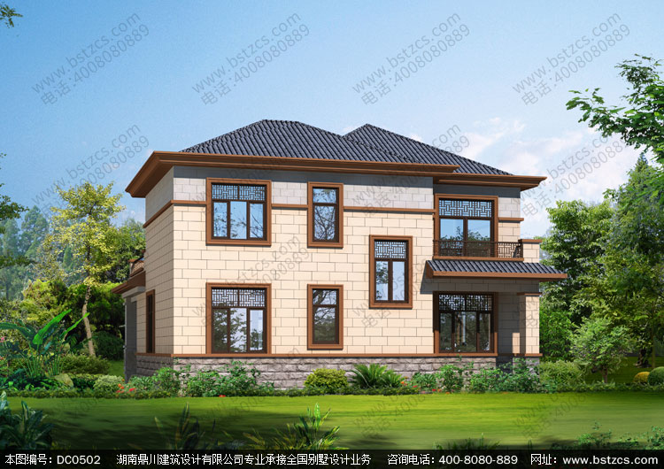 農村新中式二層帶露臺小別墅設計圖紙_農村兩層自建房設計,鼎川建筑