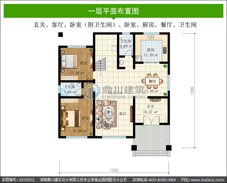 | 一 層: | 玄關、客廳、臥室(附衛生間)、臥室、廚房、餐廳、衛生間 | |||
