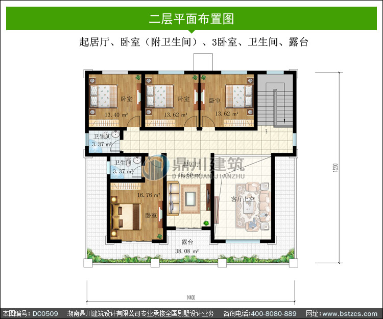 | 開間: 14.4米 | 進深: 13.2米 | 占地面積: 175.40平方米 | 建筑面積: 374.20平方米 |