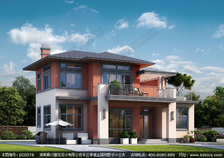 現代二層帶露臺獨棟別墅圖紙施工圖及效果圖_鄉村二層別墅設計圖紙,鼎川建筑