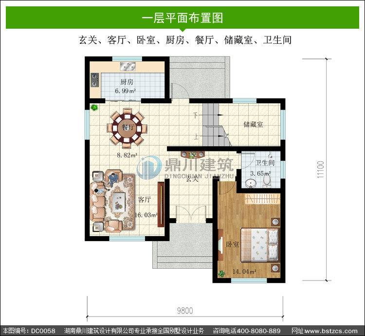 | 一 層: | 玄關(guān)、客廳、臥室、廚房、餐廳、儲(chǔ)藏室、衛(wèi)生間 | |||