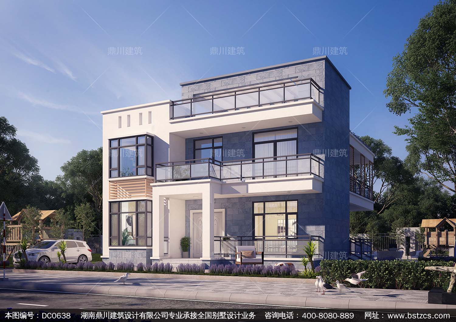 現代二層簡約小別墅設計圖紙及效果圖_農村兩層平頂別墅設計圖紙,鼎川建筑